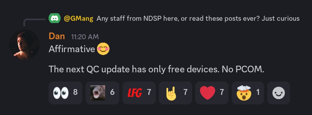 I’m happy to stay on QC. I just want to see some signs they’re developing it and not just plug-ins. I think with the silence recently it makes total sense that they are close to a release.