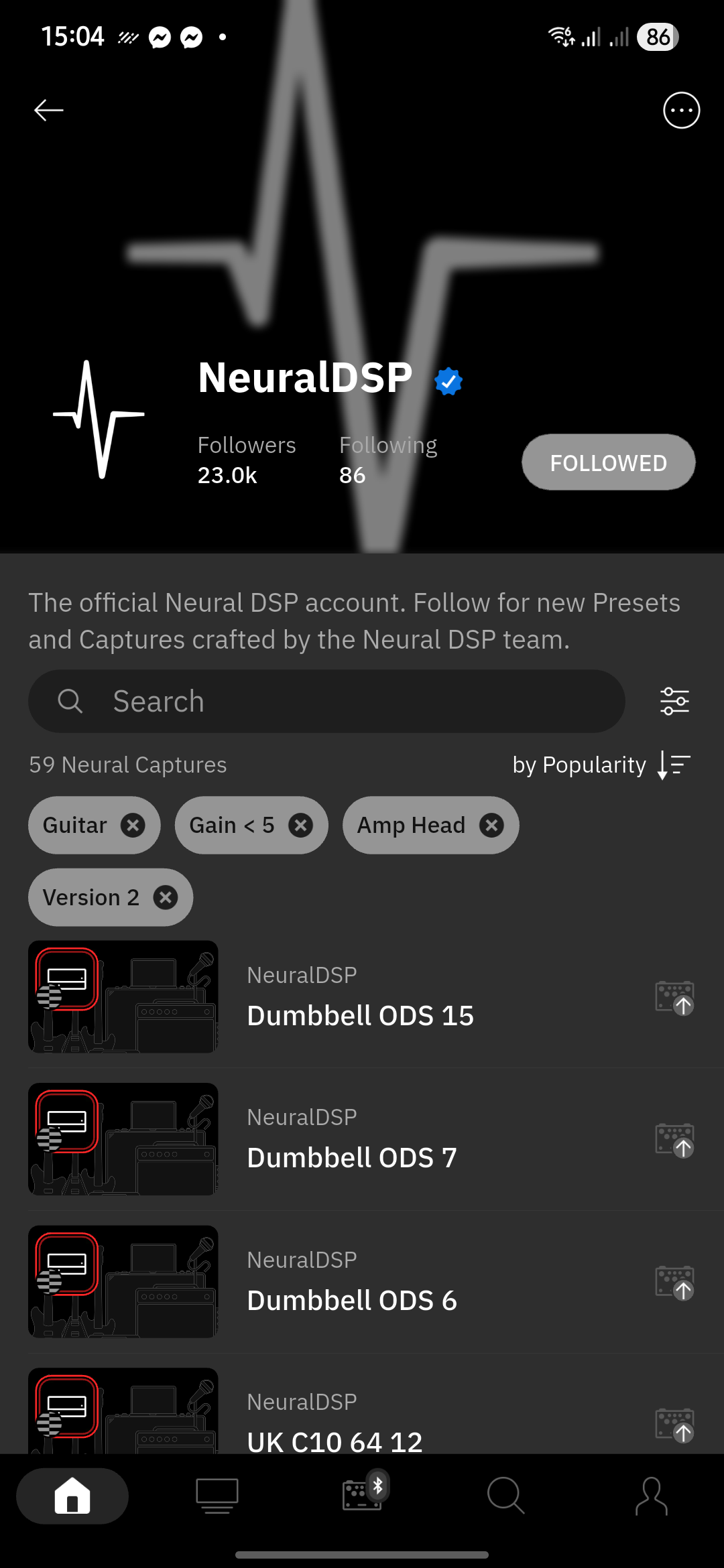 Not sure how iOS app looks like, but this is how it’s on Android, I’d guess that the basic layout would be the same accross platforms - from the homepage navigate to featured users, NeuralDSP is the first, click that, filter out the results